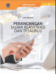 Buku Materi Pokok (BMP) ASIP4436 Perancangan Skema Klasifikasi dan Tesaurus menjelaskan tentang pengaturan informasi bisnis; perangkat klasifikasi arsip; tingkatan klasifikasi arsip; perancangan skema klasifikasi arsip; kebutuhan perancangan tesaurus; penggunaan skema klasifikasi dan tesaurus dalam pengelolaan arsip; pengelolaan seri berkas berdasarkan skema klasifikasi; hubungan antara skema klasifikasi, tesaurus, dan jadwal retensi arsip; kompetensi SDM perancang klasifikasi dan tesaurus. Dengan materi-materi substantif ilmu kearsipan, mahasiswa dapat mengimplementasikannya dalam pengelolaan arsip.