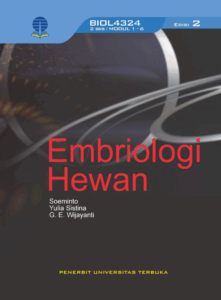 Buku Materi Pokok (BMP) BIOL4324 Embriologi Hewan ini memberikan penjelasan tentang pengertian embriologi yang mencakup proses-proses gametogenesis, fertilisasi, segmentasi morulasi, blastulasi, gastrulasi, organogenesis, metamorfosis, regenerasi, manipulasi gamet dan zigot. Dengan mempelajari mata kuliah ini, mahasiswa diharapkan dapat menjelaskan perkembangan kehidupan awal individu hewan sejak terjadinya proses fertilasi (pembuahan) hingga tercapai struktur maupun fungsi yang tetap seperti induk dewasanya.