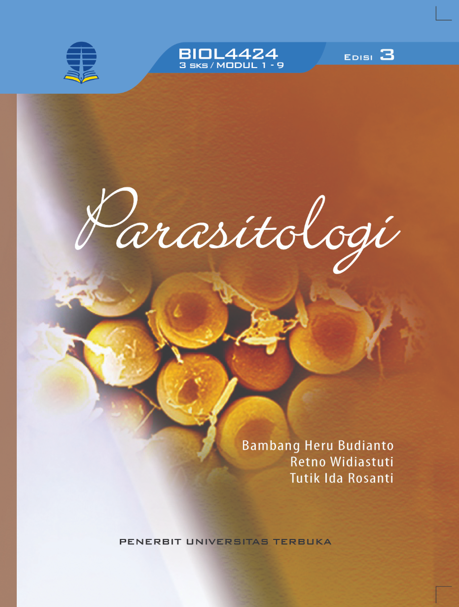 BMP BIOL4424 PARASITOLOGI membahas tentang berbagai hal mengenai hewan parasit yang hidup pada manusia dan hewan. Penjelasan diawali dengan keterangan parasit dan parasitisme, daur hidup parasit dan interaksinya dengan inang dan diakhiri dengan strategi pengendalian penyakit parasit. Dengan mempelajari mata kuliah ini, mahasiswa diharapkan dapat menerapkan pengetahuan parasitologi dalam masyarakat luas, misalnya turut berperan dalam usaha pencegahan penyakit parasit.