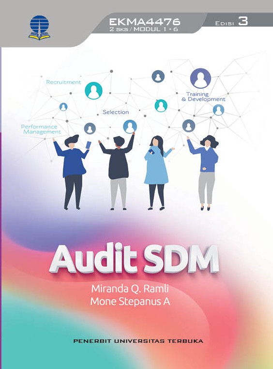 Buku Materi Pokok (BMP) Audit SDM membahas secara komprehensif mengenai sistem dan proses audit manajemen sumberdaya manusia. BMP Audit SDM juga memberikan pemahaman tentang audit kompatibilitas; audit fungsi perencanaan dan pengadaan sumberdaya manusia berbasis kompetensi; audit fungsi pengembangan dan pemeliharaan sumberdaya manusia berbasis kompetensi; audit aspek sumberdaya manusia; audit aspek efisiensi dan efektivitas manajemen sumberdaya manusia berbasis kompetensi. Dengan demikian pengetahuan tentang audit SDM diharapkan dapat memberikan acuan bagi upaya proses dan system audit sumberdaya manusia dalam suatu organisasi. Secara umum BMP ini mencakup topik-topik tentang konsep dasar audit dan audit manajemen sumberdaya manusia berbasis kompetensi; ruang lingkup audit manajemen sumberdaya manusia berbasis kompetensi; model; pendekatan dan instrument riset dalam manajemen sumberdaya manusia berbasis kompetensi; audit praktek fungsi-fungsi manajemen sumberdaya manusia berbasis kompetensi dan pengukuran HR Metrics; analisis aspek sumberdaya manusia; analisis aspek dan efektivitas manajemen sumberdaya berbasis kompetensi; dan merancang pelaporan audit manajemen sumberdaya berbasis kompetensi.
