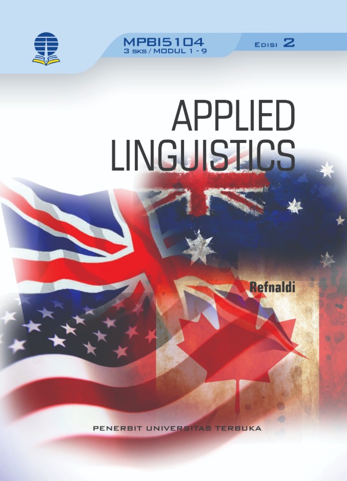 MPB15104 Applied Linguistics coursebook provides the students with knowledge of applied linguistics in interdisciplinary perspectives, such as second language acquisition, foreign language teaching, language analysis, translation, forensic linguistics, and lexicography that enable them to understand and do applied linguistics research to solve problems related to the use of language in real world.