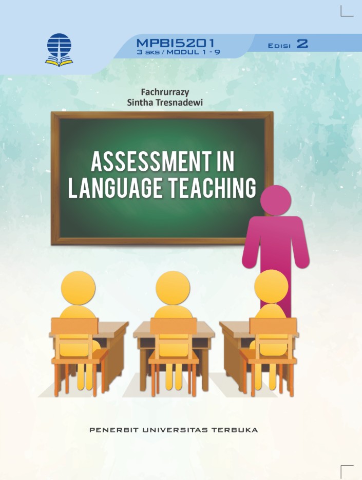 MPBI5201 Assessment in Language Teaching course book will guide the students to have the abilities to: define language assessment terms, identify trends in testing approaches, identify current issues in testing, and explain principles of language assessment, construct various types of traditional tests, and standards-based assessment, assess students’ listening skill, speaking skill, reading skill, and writing skill; assess language components, design alternative assessment, interpret student scores, design classroom language assessment and standardized assessment.