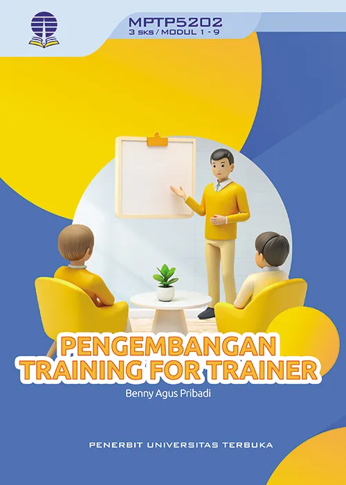 Buku Materi Pokok (BMP) MPTP5202 Pengembangan Training for Trainer ini membahas kegiatan pelatihan (training) sebagai bagian yang esensial dalam pengembangan sumber daya manusia di lingkungan institusi atau perusahaan. Setelah mempelajari mata kuliah ini, mahasiswa diharapkan mampu mendesain dan mengembangkan program pelatihan bagi para pelatih secara efektif, efisien, dan berdampak. Mata kuliah ini mengkaji secara komprehensif berbagai konsep dan prinsip, meliputi: konsep dasar pelatihan; kompetensi dan keterampilan yang harus dimiliki pelatih dalam berkomunikasi dan melakukan presentasi; model desain sistem pembelajaran yang dapat digunakan dalam merancang dan mengembangkan program pelatihan; perumusan tujuan pelatihan sebagai dasar penetapan hasil belajar; pemilihan metode dan strategi pelatihan; pengembangan serta penyediaan media dan bahan pelatihan; serta penerapan model evaluasi untuk menilai efektivitas program pelatihan.