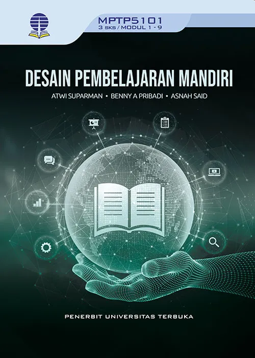 Buku Materi Pokok (BMP) MPTP5101 Desain Pembelajaran Mandiri merupakan salah satu kajian inti dalam bidang teknologi pendidikan. Mata kuliah ini tidak hanya memberikan pengetahuan dan teori semata, tetapi juga keahlian dalam merancang sistem pembelajaran dalam konteks yang luas. Kemampuan dalam menerapkan desain sistem pembelajaran merupakan hal yang esensial dalam merealisasikan teknologi pendidikan untuk memfasilitasi proses belajar peserta didik agar menguasai kompetensi yang diperlukan. Buku Materi Pokok (BMP) ini merupakan mata kuliah inti berbobot 3 SKS yang dipelajari pada semester I dalam Program Magister Teknologi Pendidikan. Mata kuliah ini dirancang untuk membekali mahasiswa dengan landasan teoretis yang kokoh serta keterampilan praktis dalam merancang sistem pembelajaran yang efektif, efisien, dan adaptif. Pembelajaran diarahkan untuk menjawab tantangan pendidikan masa kini serta berfokus pada kebutuhan peserta didik dewasa yang memiliki karakteristik khas dalam belajar: mandiri, reflektif, berbasis pengalaman, dan berorientasi pada pemecahan masalah.