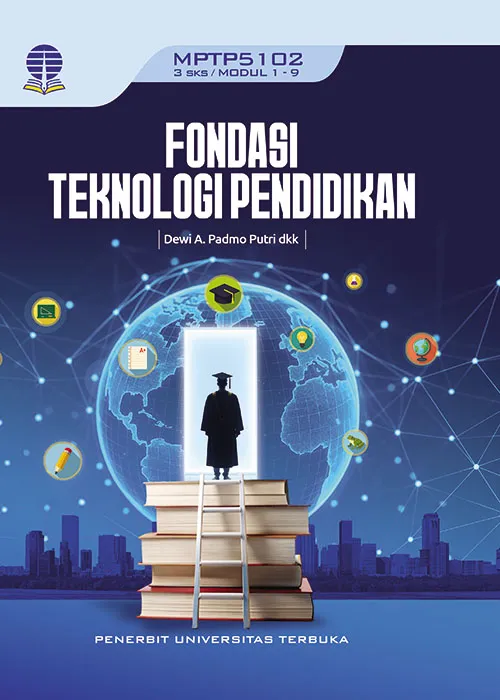 Buku Materi Pokok (BMP) MPTP5102 Fondasi Teknologi Pendidikan merupakan mata kuliah dasar yang diberikan pada semester pertama Program Studi S-2 Teknologi Pendidikan dengan bobot 3 sks. Mata kuliah ini dirancang untuk membekali mahasiswa dengan pemahaman komprehensif mengenai fondasi, ruang lingkup, dan teori-teori yang mendasari bidang studi teknologi pendidikan. Cakupan materi meliputi perspektif teori psikologi dan perkembangan manusia, teori instruksional dan desain pembelajaran, teori komunikasi informasi dan inovasi adopsi, serta pendekatan praktikal seperti tren dan inovasi teknologi pendidikan. Mahasiswa juga diajak untuk mengkaji pemanfaatan teknologi dalam pembelajaran dan dunia kerja, mengevaluasi efektivitasnya dalam konteks pendidikan, memahami tantangan dan etika penerapannya, serta mengeksplorasi prospek dan profesi di bidang teknologi pendidikan. Melalui kajian ini, mahasiswa diharapkan mampu mengembangkan wawasan kritis dan aplikatif terhadap peran teknologi dalam mendukung transformasi pendidikan.