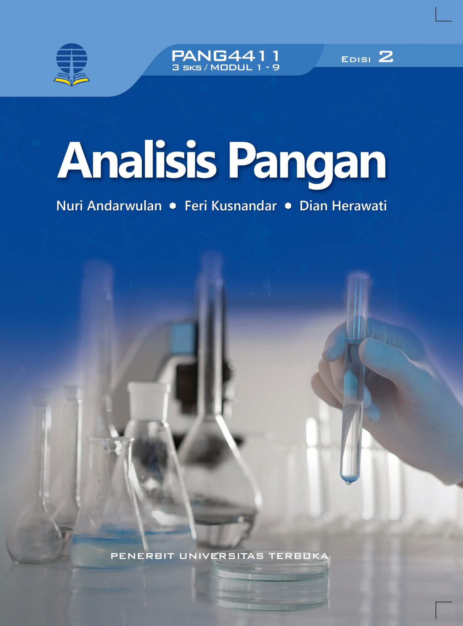 Buku Materi Pokok (BMP) PANG4411 Analisis Pangan ini membahas pengelolaan data analisis pangan, sifat kimia (air, abu, mineral, protein, lemak, dan karbohidrat) dan sifat fisik (warna, reologi, tekstur) bahan pangan secara singkat, serta berbagai metode dan prosedur analisis sifat kimia dan sifat fisik bahan pangan. Berbagai metode analisis diberikan untuk memberikan wawasan kepada mahasiswa agar mampu memilih metode analisis sesuai dengan karakteristik bahan pangannya.