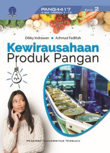 Buku Materi Pokok (BMP) PANG4417 Kewirausahaan Produk Pangan ini membahas tentang langkah-langkah yang perlu disiapkan dalam mendirikan usaha bisnis pangan mulai dari aspek produksi, pemasaran, sumber daya manusia, keuangan, serta manajemen risikonya. Pada awal pembahasan, mahasiswa diajak terlebih dahulu untuk menggali potensi dan karakter seorang wirausaha, menggali ide usaha dalam bisnis pangan, dan menuangkannya dalam kanvas bisnis model. Mahasiswa juga diajarkan cara menyusun proposal kelayakan usaha bisnis pangan serta berkomunikasi dan bernegosiasi dalam menjual produk pangan.
