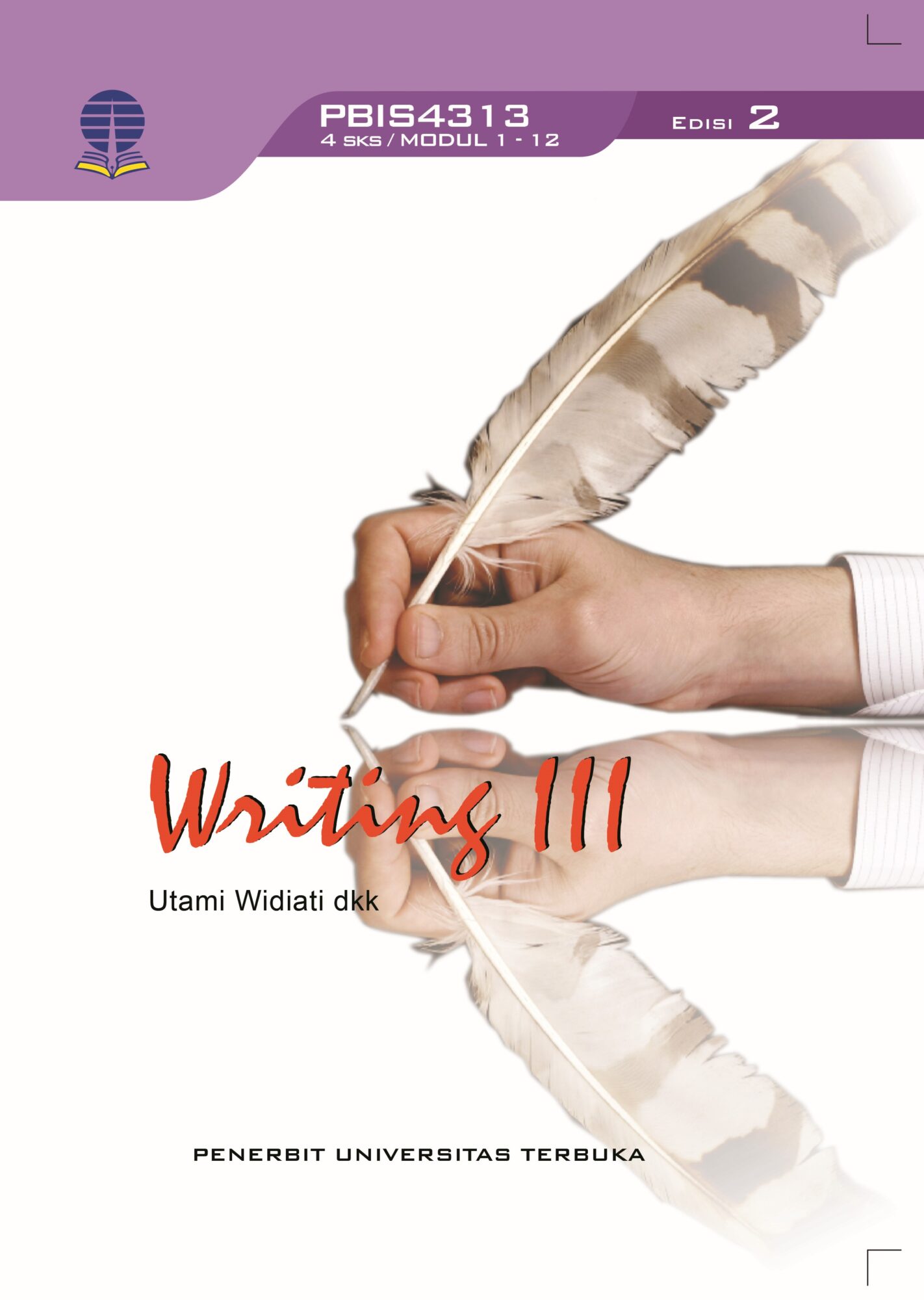 The Writing III course/PBIS4313 is designed to provide opportunity for students of S1 English Education Program to develop the skills of English writing with the focus on essay writing. To improve the skills of English writing, the students need to understand the knowledge of related concepts that include elements of paragraph, elements of essay, and types of essays such as narration, description, exposition, and argumentation. To obtain the writing skills on various types of essay, the students need to read the description on related concepts, and the samples of essay. Moreover, the students should do the writing exercises including guide writing, outlining, and writing a complete essay based on outline. The students competence in writing is measured by a writing test in the form of essay held at the end of each semester.