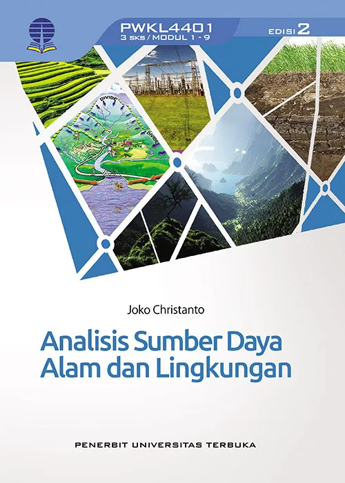 Buku Materi Pokok (BMP) PWKL4401 Analisis Sumber Daya Alam dan Lingkungan ini memberikan pemahaman tentang kebijakan pengelolaan sumber daya alam dan lingkungan serta bentang lahan DAS (Daerah Aliran Sungai) dalam hubungannya dengan perencanaan wilayah, metode identifikasi sumber daya alam dan lingkungan, Kajian Lingkungan Hidup Strategis (KHLS) dan Analisis Risiko Lingkungan (ARL, valuasi ekonomi sumber daya alam dan lingkungan, serta kemampuan dan kesesuaian lahan. Setelah mempelajari BMP ini, Anda mampu menguasai dasar-dasar analisis sumber daya alam dan lingkungan di wilayah tertentu, serta mampu menentukan status potensi, kendala peluang, dan tantangan dalam perencanaan pengembangan wilayah.