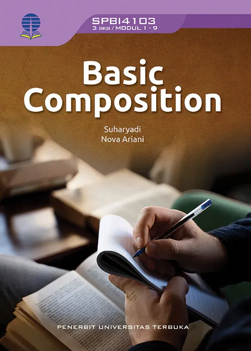 Buku Materi Pokok (BMP) SPB14103 Basic Composition dirancang untuk membekali mahasiswa agar mampu menulis berbagai macam paragraf yang meliputi descriptive, recount, narrative, process/procedure, compare and contrast, dan couse-effect. berdasarkan kaidah kaidah atau ciri-ciri paragraf yang baik yang meliputi topic sentence, supporting sentences, dan concluding sentence(s) serta elemen elemen lainnya seperti coherence dan unity, termasuk struktur dan fitur tipe teksnya. Pembelajaran matakuliah ini menitikberatkan kepada pendekatan proses dan produk, dimana mahasiswa tidak hanya belajar berbagai macam teks beserta fitur-fiturnya dalam melainkan Juga langsung terlibat memproduksi paragraf sesuai teks melalui tahapan-tahapan yang terukur, yang meliputi pre-writing, organizing, writing, polishing: revising and editing serta pembimbingan melalui kegiatan tutorial, Hasil akhir dari matakuliah ini adalah berupa kompetensi yang diases dengan tes esai.