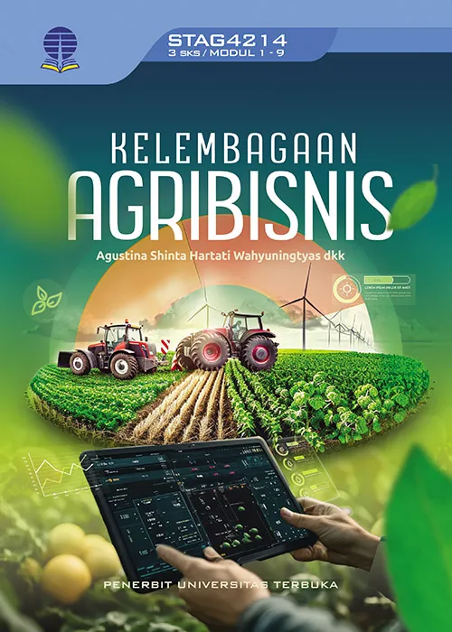 Buku Materi Pokok (BMP) STAG4214 Kelembagaan Agribisnis ini memberikan wawasan tentang peran kelembagaan dalam agribisnis melalui berbagai modul dan kegiatan belajar yang terstruktur. Pembelajaran diawali dengan konsep dasar kelembagaan dan aplikasinya dalam sektor agribisnis, termasuk definisi, karakteristik, dan fungsinya. Selanjutnya, mahasiswa akan mempelajari peran kelembagaan produksi melalui kelompok tani, penyuluh pertanian, serta sarana dan prasarana produksi. Topik pascapanen dan agroindustri juga dibahas, mencakup pengelolaan kelembagaan, pengembangan SDM, serta inovasi untuk efisiensi proses pascapanen. Mata kuliah ini juga membahas kontribusi kelembagaan terhadap ketahanan pangan, metode evaluasi, studi kasus, serta pemetaan potensi kelembagaan. Selain itu, mahasiswa akan mempelajari peran kelembagaan pemasaran, penyuluhan, dan lembaga keuangan agribisnis dalam mendukung agribisnis.