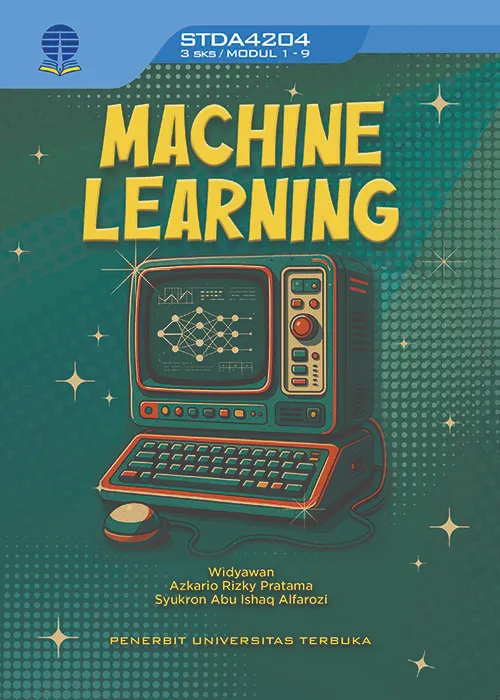 Buku Materi Pokok (BMP) STDA4204 Machine Learning memberikan pengantar komprehensif tentang Machine Learning (ML), dimulai dari konsep dasar, sejarah, hingga berbagai aplikasi modernnya. Mahasiswa akan mempelajari pustaka dan perangkat yang umum digunakan dalam pengembangan proyek ML, terutama berbasis Python. Materi mencakup teknik preprocessing dan eksplorasi data, serta berbagai algoritma pembelajaran seperti supervised, unsupervised, dan reinforcement learning, termasuk metode evaluasi dan validasi model. Selain itu, mata kuliah ini juga memperkenalkan topik lanjutan seperti neural networks, deep learning, dan Natural Language Processing (NLP) sebagai dasar untuk pengembangan lebih lanjut di bidang kecerdasan buatan.”