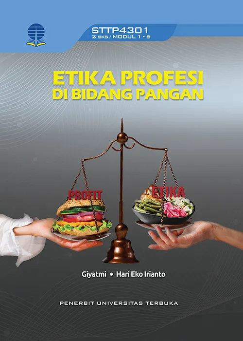 Buku Materi Pokok (BMP) STTP4301 Etika Profesi di bidang Pangan merupakan cabang dari filsafat yang mempertimbangkan apa yang dianggap sebagai perilaku atau tindakan yang benar atau salah dalam konteks bidang pangan. Etika merupakan studi tentang moralitas termasuk analisis terhadap berbagai konsep teori, dan prinsip moral. Etika profesional, di sisi lain, mengacu pada standar perilaku yang diharapkan dalam suatu profesi tertentu. Kode etik profesi biasanya didasarkan pada prinsip-prinsip moral yang universal seperti kejujuran keadilan dan tanggung jawab. Secara esensial etika profesi melampaui sekadar kepatuhan terhadap aturan dan peraturan formal. Ia juga mencakup proses abstrak dalam membentuk dan menerapkan pengetahuan ilmiah yang relevan dengan bidang profesi tertentu. Dengan mempertimbangkan ide-ide inovatif dan pemikiran kreatif etika profesi mendorong untuk menciptakan solusi baru dan meningkatkan kualitas hasil kerja. Dalam hal ini akan membahas mengenai etika profesi ahli teknologi pangan yang akan terbagi dalam enam modul yang saling menunjang dan berkesinambungan secara sistematis dari modul satu sampai dengan modul enam.