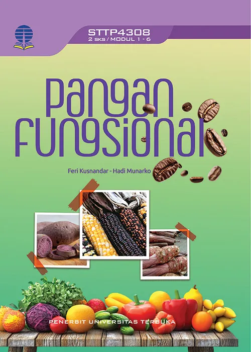 Buku Materi Pokok (BMP) STTP4308 Pangan Fungsional membahas definisi dan konsep pangan fungsional (pengertian pangan fungsional dan bagaimana hubungannya dengan gizi dan kesehatan serta pengelompokan pangan fungsional berdasarkan sumber pangan, jenis komponen fungsional dan kelompok produk pangannya), hubungan pangan fungsional dengan gizi dan kesehatan, senyawa zat gizi dan nongizi sebagai komponen pangan fungsional, sumber pangan dan pangan olahan tradisional sebagai pangan fungsional, pangan olahan industri dan regulasinya sebagai pangan fungsional. Materi yang dibahas diperkaya dengan hasil-hasil penelitian terkini yang terkait dengan pengembangan pangan fungsional. Dengan mempelajari BMP ini, mahasiswa diharapkan mampu menerapkan prinsip dan regulasi pangan fungsional dalam pengembangan produk pangan fungsional. Buku ini juga dapat dimanfaatkan untuk memberikan wawasan bagi praktisi di industri pangan, dosen dan peneliti, serta mahasiswa dalam mengembangkan produk pangan fungsional.