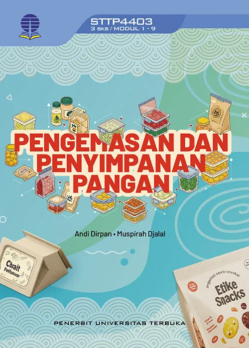Buku Materi Pokok (BMP) STTP4403 Pengemasan dan Penyimpanan Pangan memberikan pengetahuan kepada mahasiswa tentang arti dan peranan pengemasan dan penyimpanan pangan yang meliputi sejarah dan peranan pengemasan dan penyimpanan pangan, pengertian dan fungsi kemasan pangan, teknik pengemasan produk pangan, pengemasan modern, ruang lingkup penyimpanan dan fungsi penyimpanan pangan, faktor penting dalam penyimpanan pangan, berbagai jenis penyimpanan untuk bahan pangan, dan manajemen pergudangan dalam penyimpanan pangan.
