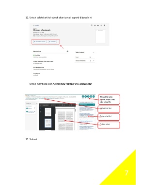 12. Untuk koleksi ar kel ebook akan tampil seper dibawah ini 1 Untuk membaca pilih Access Now (eBook) atau Download Menu pilihan untuk melihat, simpan, cetak, atau berbagi file Metadata artikel Referensi artikel Fulltext artikel 13. Selesai 7